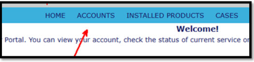 - After logging into the customer portal, click on Accounts in the top Ribbon.