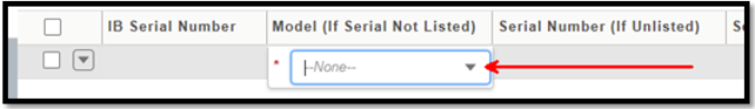 8. If a matching sensor is not found during the Installed Records search, manually enter the model and SN. (Note that the column widths can be expanded to show the full description.)