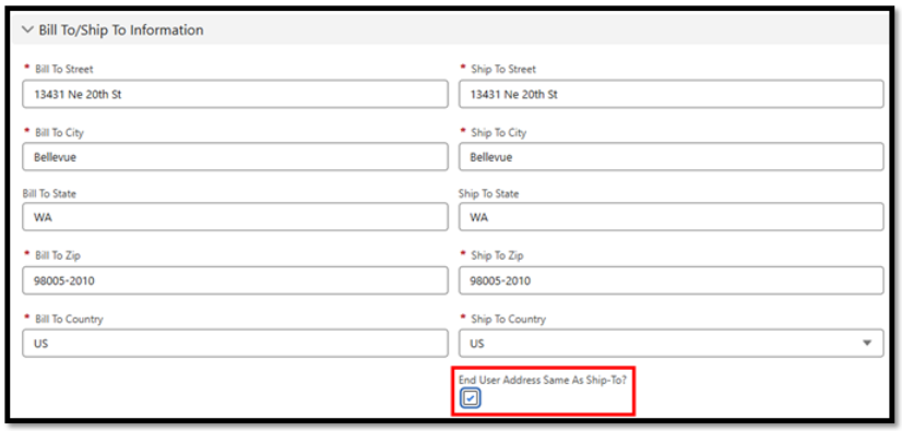 4. Confirm the Bill To and Ship To addresses are correct, revise as needed.