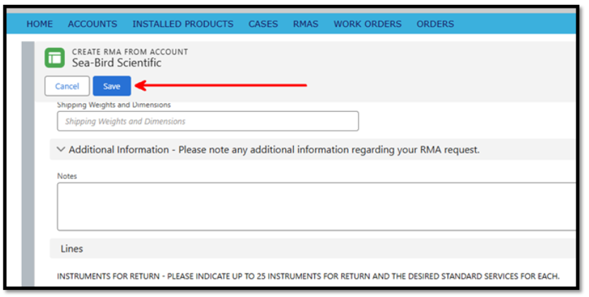 12. When all sensors have been entered and all other elements of the form are complete, click the blue Save button at the top.
